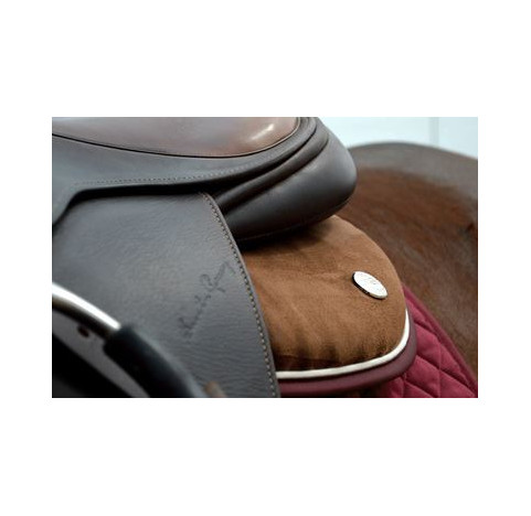 Le préféré de tous nos utilisateurs ; un outil de monte exceptionnel. Doté de la même ligne de dos que tous les autres tapis de selle Ogilvy : dessiné de façon à s’asseoir bien solidement à la base du garrot et à offrir une protection supérieure du garrot et du dos de votre cheval, ce demi pad unique est fait de suède lavable ultra-résistant qui adhère bien au cuir de la selle et de molleton/élastine mince, résistant et doux qui suit naturellement le mouvement du dos du cheval sans aucune friction. Grâce à notre technologie anti-friction, le mouvement est transféré à l’intérieur du demi-pad au 1er point de friction près du garrot et aux autres points de frictions du dos.