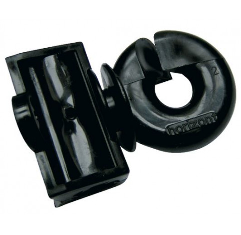 Isolateur pour piquet rond 10mm ø. Pour rubans jusqu'à 12mm de large et fils jusqu'à 4mm ø.