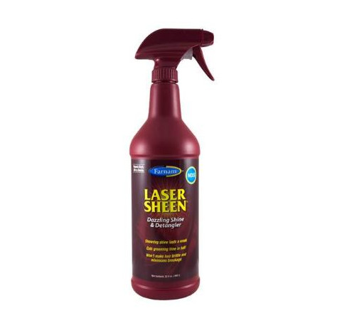 Formule exclusive, non grasse qui donne à la robe des chevaux son plus bel éclat. LASER SHEEN démêle également les crins de la queue et de la crinière pour une longue durée. Eloigne la poussière et les saletés, évite les tâches d’herbe et de fumier, et préserve la propreté et l’éclat de la robe durant tout une semaine. La présence de gel d’aloé véra assure une hydration de la peau. Bien agiter avant chaque emploi puis vaporiser jusqu'à complète imprégnation sur l’ensemble de la robe du cheval, la crinière et la queue. Eviter les yeux et les muqueuses. Etaler le produit avec la main, dans le sens du poil. Laisser sécher complètement avant de parfaire au chiffon doux.