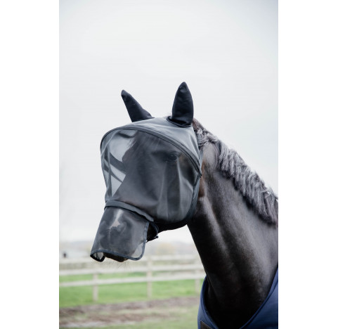Le masque anti-mouches Pro protège les oreilles, les yeux et le nez du cheval contre les mouches et autres insectes. Il offre une protection maximale contre les insectes sans déranger le cheval. C'est la solution idéale pour les chevaux très sensibles aux insectes. Le masque peut être utilisé en prairie et est très résistant aux chevaux espiègles. Le masque est fait d'un tissu à mailles solides mais extrêmement respirant. Le rabat nasal du masque est détachable, ce qui vous permet de choisir le niveau de protection. Les oreilles du masque anti-mouches pro sont faites d'une maille de tricot anti-mouches solide et très efficace. Protège les yeux, les oreilles et le nez. Volet nasal détachable. Tissu en maille solide et respirant. Le masque reprend sa forme initiale.