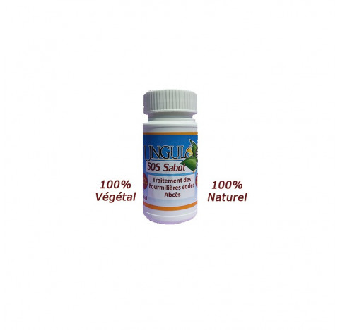 UNGULA SOS Sabot : Huile Antibactérienne, Fongicide, Antiparasitaire et antiseptique pour le Sabot et La Fourchette. Sans acide, produit 100% Végétal et 100% Naturel. Conseil d'utilisation : Bien agiter la pipette avant de s’en servir. Verser abondamment l’huile sur la partie du pied à traiter. Etaler au pinceau afin de bien faire pénétrer l’huile. Renouveler quotidiennement l’opération jusqu’à guérison complète. Composition : Plus de 16% d’huiles essentielles pures et brutes (10 huiles différentes) huiles Végétales, vitamines, extraits végétaux. Utilisation : Huile très peu nourrissante chargée d’un fort pouvoir antiseptique, antibactérien, antiparasitaire et fongicide. L’association de plusieurs huiles végétales et essentielles permet d’avoir un très large spectre d’action pour lutter contre les maladies de la corne. Cette huile peut servir pour traiter l’extérieur du pied, la fourchette et la sole. Remarque : Pour les problèmes de fourchettes pourries, l’huile SOS Fourchette et « Le Baume » sont préconisés car à la différence de SOS Sabot, ils sont riches en composition et vont nourrir la fourchette en l’aseptisant. Le traitement est souvent optimisé après l’intervention du maréchal ferrant. L’utilisation de l’huile SOS Sabot est recommandée pour le traitement des Champignons, de la maladie de la Ligne Blanche, des Fourmilières, de l'Infection due aux trous de clou et pour l’aseptisation des Abcès. Ne contenant pas d'acide, le cheval ne réagit que très peu à l’application du produit. Cela facilite donc l’application quotidienne.