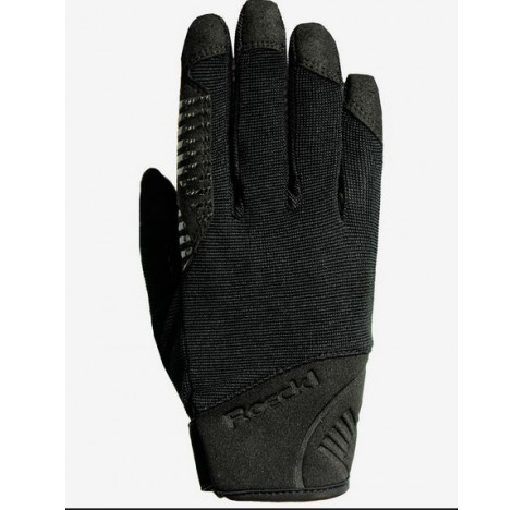 Des gants d'équitation universels très robustes. Grâce à leur conception solide et innovante, ils conviennent également pour longer, monter un cheval dans un van ou pour travailler aux écuries. Cette matière en daim synthétique soumise aux tests les plus sévères est particulièrement robuste, par conséquent elle est idéale pour manipuler un cheval, le longer, etc. Ces gants sont confortables et souple tout en ne diminuant en rien la sensation que l'on a des rênes. Ces gants sont renforcés de SILICONE AGRIPPANT au pouce et sur la paume tout comme au bord de l'index pour assurer une bonne adhérence des rênes de bride comme de filet. Le dessus des gants est réalisé dans une matière Spandex élastique et robuste, et la coupe exclusive ROECKL CONFORT, gaine la main au plus près de la morphologie de chacun. Grâce à la COUPE FONCTIONNELLE des DOIGTS, leurs extrémités sont spécialement protégées contre les blessures éventuelles. Poignets en néoprène et lanière de fermeture sous la paume. Se lave.