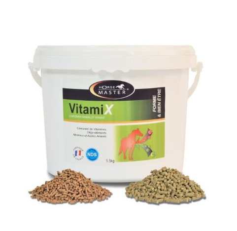 VITAMIX est un concentré de vitamines, d’oligo-éléments, de minéraux, et d’acides aminés. Ces micro-nutriments sont apportés sous une forme garantissant leur appétence, leur efficacité et leur conservation. VITAMIX apporte de manière dissociée en 2 granulés distincts (granulé neutre = vitamines et macro-éléments, granulé rouge = oligo-éléments + levures de bière) pour éviter les interactions négatives entre les principaux constituants. VITAMIX est le nouvel allié forme et vitalité de votre cheval.