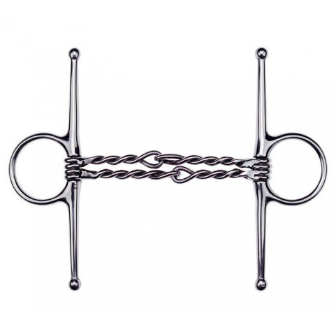 Mors double embouchure brisée avec canons torsadés et asymétrique. Embouchure très sévère pour chevaux chauds et raides. Canons torsadés : 16 mm. Branches : 180 mm. Composition : Inox. Conseils d'entretien : Rincer à l'eau claire après chaque utilisation jusqu'à ce qu'il ne reste plus aucun résidu. Ne pas utiliser si le mors présente une anomalie (abimé, rouille, etc).