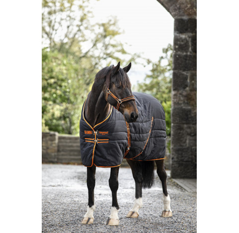 Cette couverture d'écurie est fabriquée en polyester indéchirable 1000D avec une doublure microfibre ave garnissage en fibres thermoliées. Sa coupe classique avec double fermeture à l'avant et son col en polaire apportera un grand confort à votre cheval. CARACTERISTIQUES : extérieur en polyester indéchirable 1000D, doublure microfibre avec garnissage en fibres thermoliées, cordelette de queue, sursangles croisées.