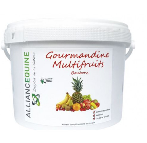 Alliance Equine - Gourmandine Multifruits Bonbons Cheval Gourmandine Multifruits garanti sans conservateur et sans OGM.Gourmandine Multifruits au colorant naturel.