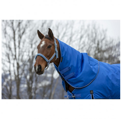 Couvre-cou 1200 deniers imperméable et respirant doublé nylon antistatique et anti-frottements. Fermeture par double bande auto-agrippante double face montée sur support élastique. Fixation à la couverture par 3 sanglons élastiques équipés d'un mousqueton central et de 2 bandes auto-agrippantes latérales. Logo réfléchissant.