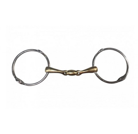 Composition : Mors Releveur à anneaux de 90 mm, canon standard de 17 mm en German Silver (65% cuivre, 23% zinc, 12% nickel) un alliage décontractant et solide.