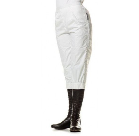 Sur-pantalon court, style Jockey imperméable, idéal en concours pour préserver votre pantalon blanc et rester au sec. Facile à enfiler et à retirer grace à des fermetures éclair et velcros sur les côtés. Ajustable à la taille et au mollet par pressions. Réalisé en nylon résistant aux déchirures. Composition: 100% nylon. Lavable à froid.