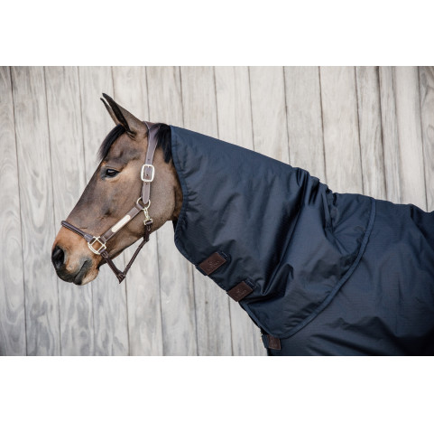Le couvre cou d’extérieur peut être utilisé en combinaison avec nos couvertures d’extérieur. Il est disponible en deux grammages différents - 0 et 150 grammes – pour que vous puissiez l’adapter aux besoins de votre cheval. La partie extérieure est faite d’un tissu « ripstop » 600D, ce qui rend ce couvre cou résistant à beaucoup de conditions climatiques. Il est entouré de nylon, avec un intérieur en PES 210T, qui offre la même sensation au toucher qu’un sac de couchage. Le cou est fixé à la couverture avec quatre fermetures velcro et se ferme grâce à deux autres fermetures velcro . Lavable en machine à 30 °, pas de sèche-linge.