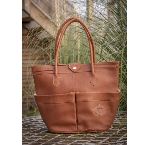 Un sac de pansage comme une pièce de maroquinerie, un bijou en cuir aux multiples options de rangements dans lequel vont se glisser brosses, époussettes et sprays en tout genre. Il peut s'utiliser en ville comme sac cabas.