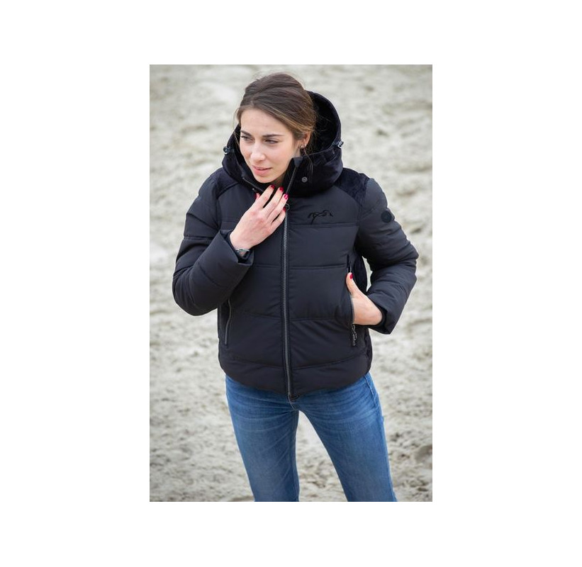 Une doudoune sobre, mais surtout d'un extrême confort, qui arrive dans nos vestiaires d'inspiration équestres. Notre doudoune Pepyrene est plutôt destinée à être portée en ville et on a plaisir à emmener la marque Pénélope en dehors des écuries ! Elle se compose d'une épaisse matelassure cousue à l'horizontale et d'une grande fermeture éclaire qui remonte le long d'un grand col bien couvrant. Sur les épaules, de chaque côté et sur la capuche, un grand empiècement de velours apporte une touche encore plus douce et élégante. Elle est équipée de deux grandes poches zippées sur le devant. La doudoune Pepyrene est faite pour l'hiver : elle isole particulièrement bien du froid et le tissu doux et légèrement stretch dans lequel elle est fabriquée fait d'elle une pièce très confortable et agréable à porter.