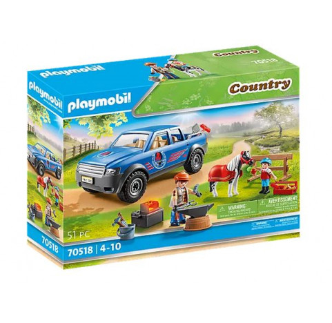 Description : Ce maréchal-ferrant possède une forge mobile dans son véhicule. Elle lui permet de confectionner les fers parfaits pour son cheval. Il apprend à son fils comment se servir de ces outils. Contient deux personnages. Dimensions du véhicule : 26 x 11 x 9,5 cm (LxPxH)
