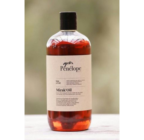 Technique et très pénétrante, l'Huile pour cuir Pénélope Mirak'oil laisse à vos cuirs une finition souple et agréable au toucher, elle est non « poisseuse ».