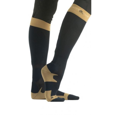 Chaussettes techniques en fibre SoftAir Plus, très confortable ! Alliez élégance et technicité pour un confort exceptionnel ! La technicité de la fibre SoftAir Plus vous octroie tout le confort dont vos pieds ont besoin ! RESPIRABILITE, THERMORÉGULATION, CONFORT, RENFORT Composition : 100% polyester. ------------- RESPIRABILITE = La SoftAir Plus est une fibre qui évacue l’humidité vers l’extérieur afin de faciliter l’évaporation, ce processus étant plus rapide qu’avec d’autres fibres naturelles ou synthétiques. SoftAir Plus maintient le corps au sec en augmentant le confort et la performance même dans des conditions extrêmes. ------------- THERMORÉGULATION = SoftAir Plus est une fibre intelligente. Selon l’utilisation et les conditions cette fibre fournit du chaud ou du froid au corps. * Dans des conditions chaudes ou haute performance physique, cette fibre agit comme un échangeur de chaleur en expulsant la chaleur du corps et en absorbant la fraîcheur de l’extérieur. * Dans des conditions froides ou de basse performance physique, elle fonctionne comme une isolation thermique en maintenant la chaleur stable et en évitant la perte de chaleur corporelle. ------------- CONFORT = SoftAir Plus est une fibre élastique qui assure un grand confort, une grande liberté de mouvement et une grande adaptabilité au corps. ------------- RENFORT = Spécialement adaptée à la pratique de l’équitation, des renforts en bouclette ont été ajoutés aux points d’appui avec le plancher et les branches d’étrier; aux zones de contacts avec l’éperon, l’étrivière et le flanc du cheval. Resserrages anti-plis tige et pied. ------------- Composition : 100% polyester.